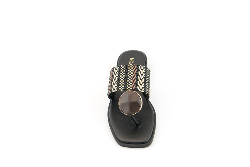 Raphia noir, beige, chocolat, doublure entièrement cuir , semelle intérieure agneau rembourrée entièrement sous le pied, semelle gomme antidérapante, talon de 2cm, entre doigts en agneau ultra souple.