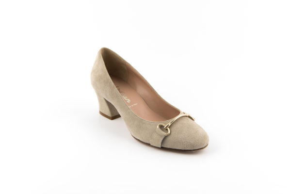 Veau velours beige, doublure entièrement cuir, première intérieure cuir, semelle cuir, talon de 5cm, mors platine.